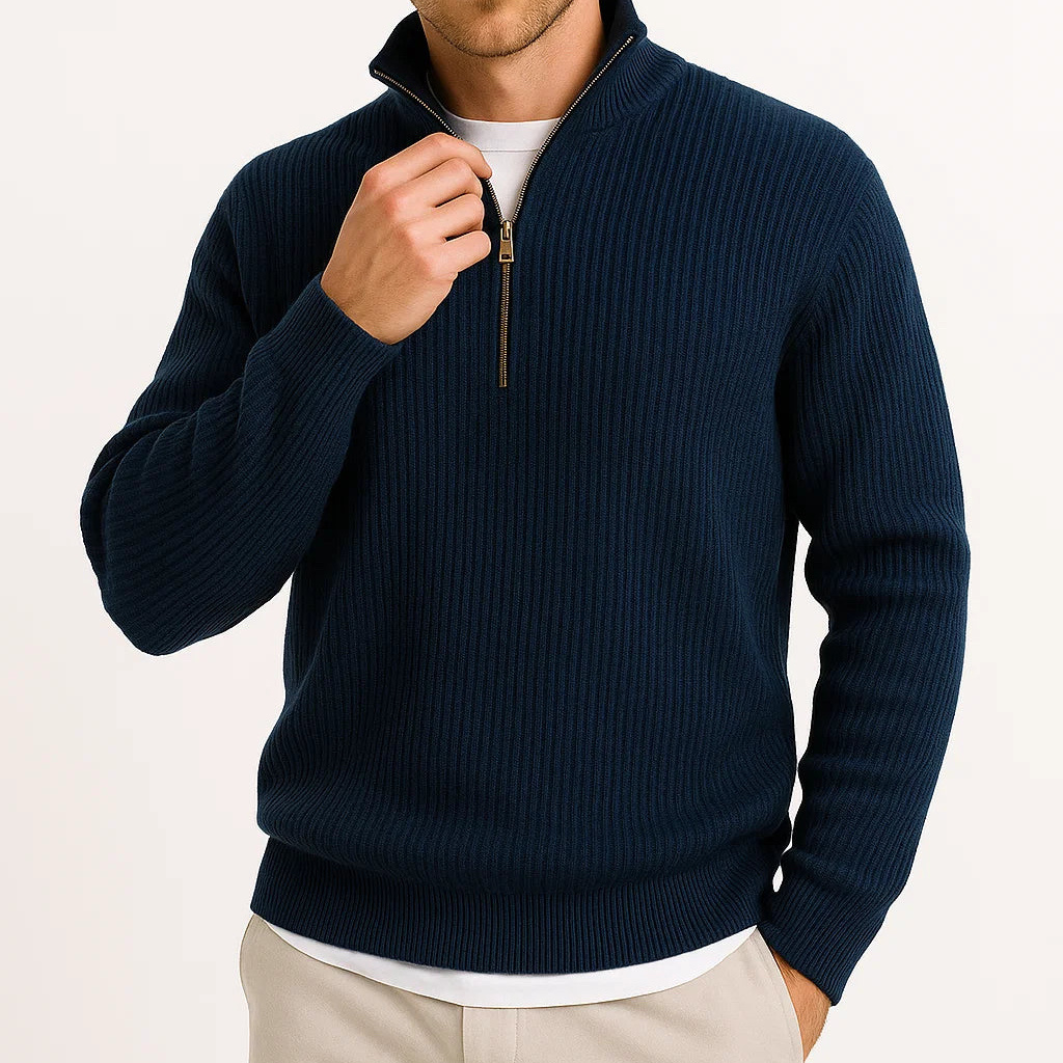 Męski Dzianinowy Sweter | Rozpinany Połowy